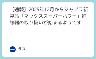 補聴器 【速報】2025年12月からジャブラ新製品「マックススーパーパワー」補聴器の取り扱いが始まるようです