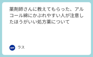 ヘルス・ビューティー 薬剤師さんに教えてもらった、アルコール綿にかぶれやすい人が注意したほうがいい処方薬について コストコで調剤薬局を利用したときに薬剤師さんから聞いた話です。わたしはアルコール綿にかぶれやすく、お薬手帳のアレルギー歴の有無を記入する項目に「アルコール綿かぶれ」と書いてます。先日コストコの薬剤師さんがお薬手帳を見て「こちらでも必ず確認す... 2025.09.28 ヘルス・ビューティー