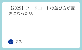 フードコート 【2025】フードコートの並び方が変更になった話 川崎倉庫店のフードコートで注文するとき、集中レジと同じ「パラレル並び(自分で並びたいレーンを選択する)」に変更されました。縦に並んだほうがレジごとの列は短くなりそうな気がしますけど、そのときは注文レジが2か所しか開いてなくてイートインスペー... 2025.09.18 フードコート