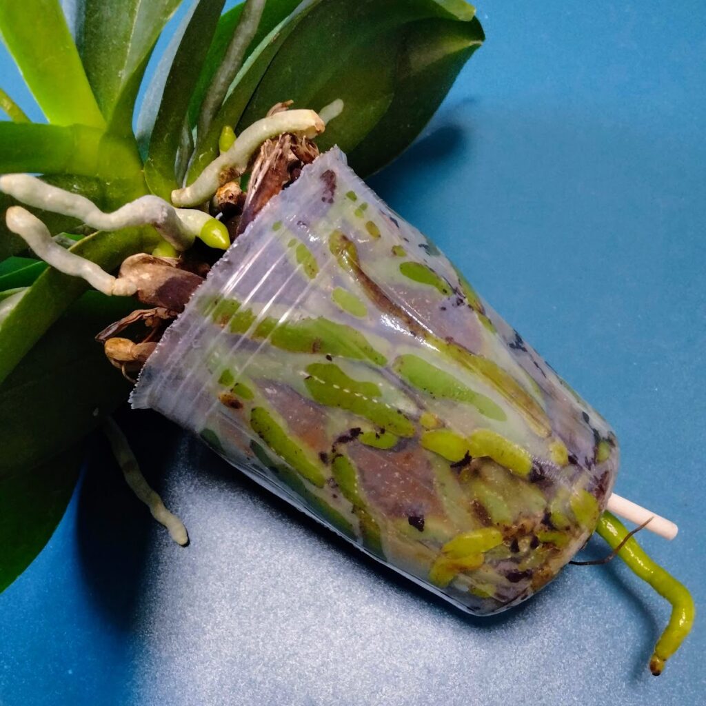 「コチョウラン=水苔」というイメージがあったのですけどバーク(木のチップ)でも育つようです。