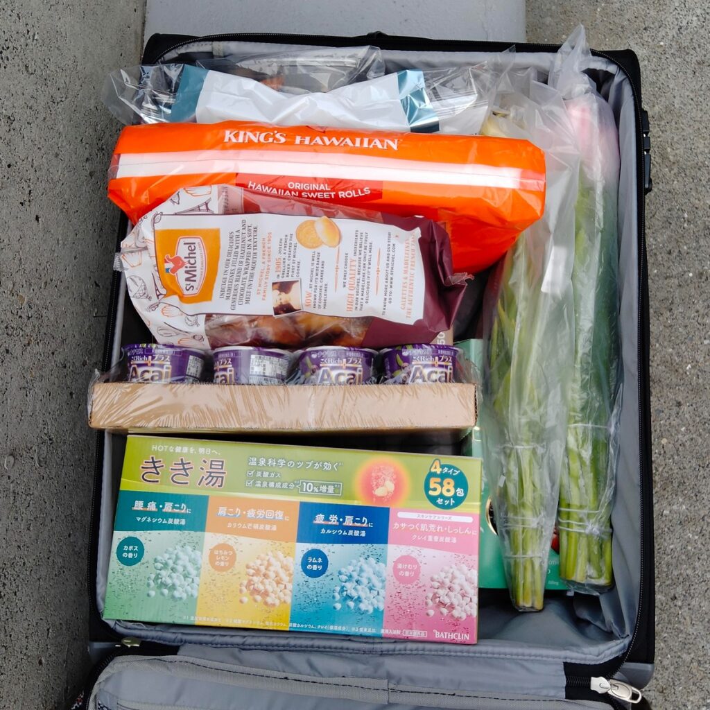フロントオープン(片開き)スーツケースに詰めてバスと電車に乗って持ち帰ります。